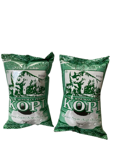 ~SERBUK MINUMAN PERASA KOPI CAP DUA BADAK ~CITARASA SEJATI KOPI KELANTAN & KOPI 'O' KAMPUNG ~BUMIPUTERA OWNER ~HALAL & MeSTI CERTIFICATE ~100gram (SERBUK HALUS) ~100g/unit , 100g X 10 unit = 1 paket **Untuk pembelian borong boleh DM**