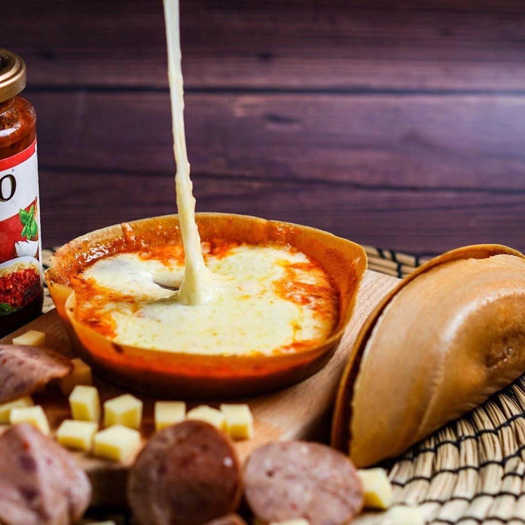 Kepingan chicken pepperoni dan dilitupi dengan sos tomato prego