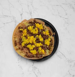 Ditaburi dengan kopi cips, kacang dan jagung berkrim
