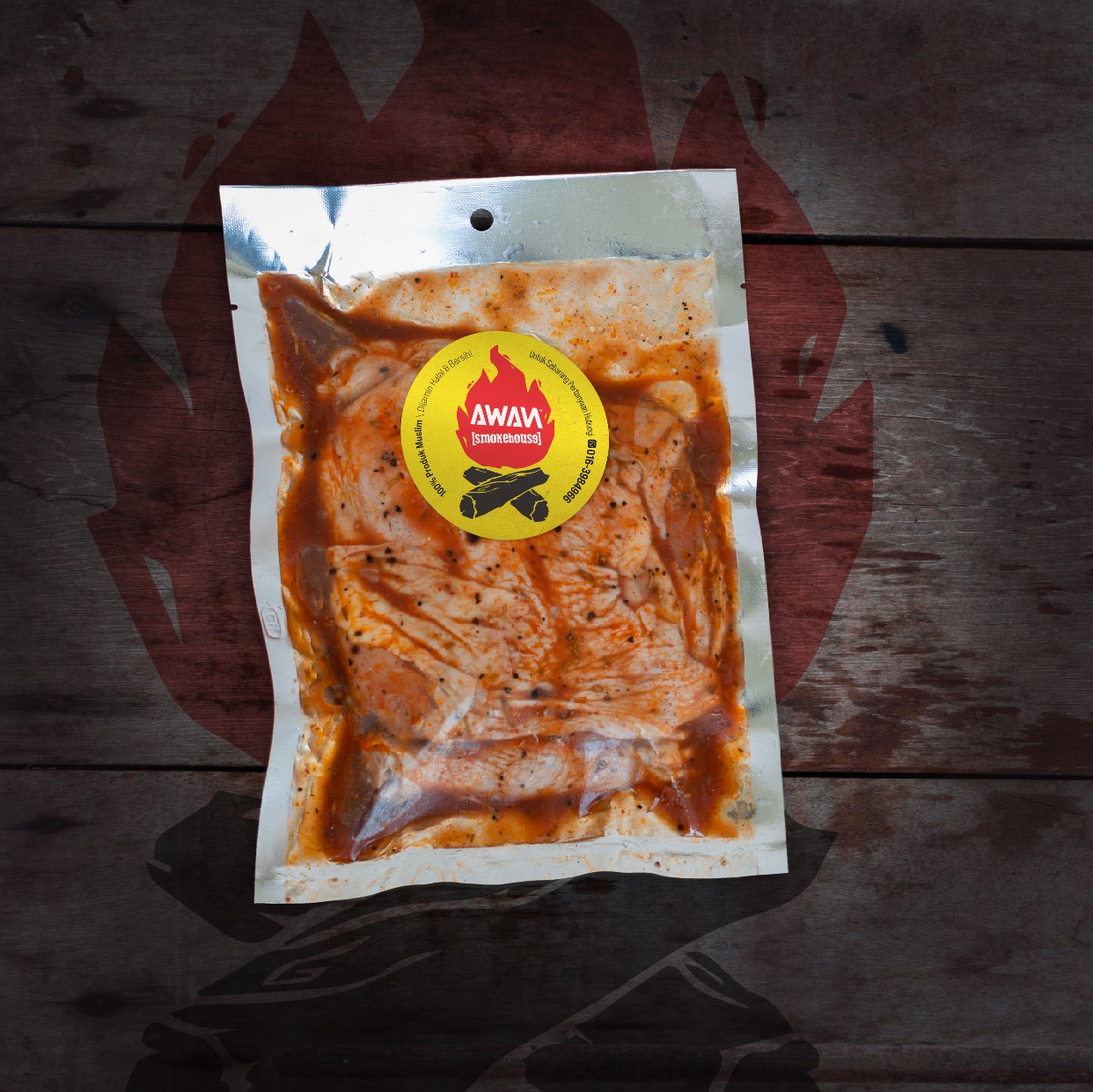 Kandungan Pek: 2 Ketul Ayam Chicken ChopProduk ayam perap sejuk beku dengan rasa 'smoked bbq'. Sedia untuk dimasak.Diberi bersama sos black pepper.Produk muslim, dijamin halal dan bersih.