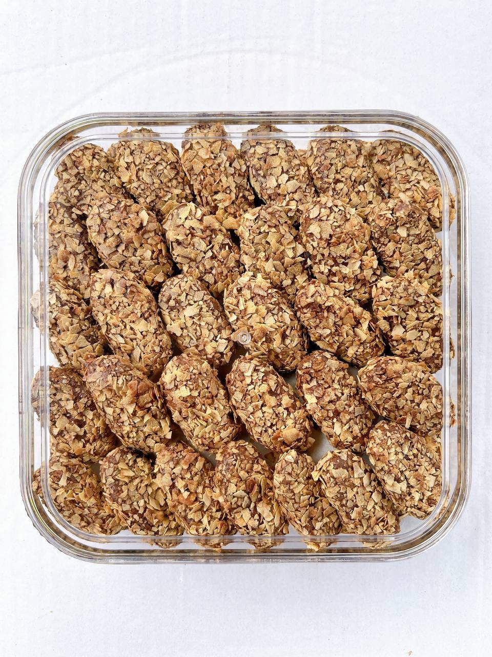 diperbuat daripada tepung dan disaluti oleh coklat nestum