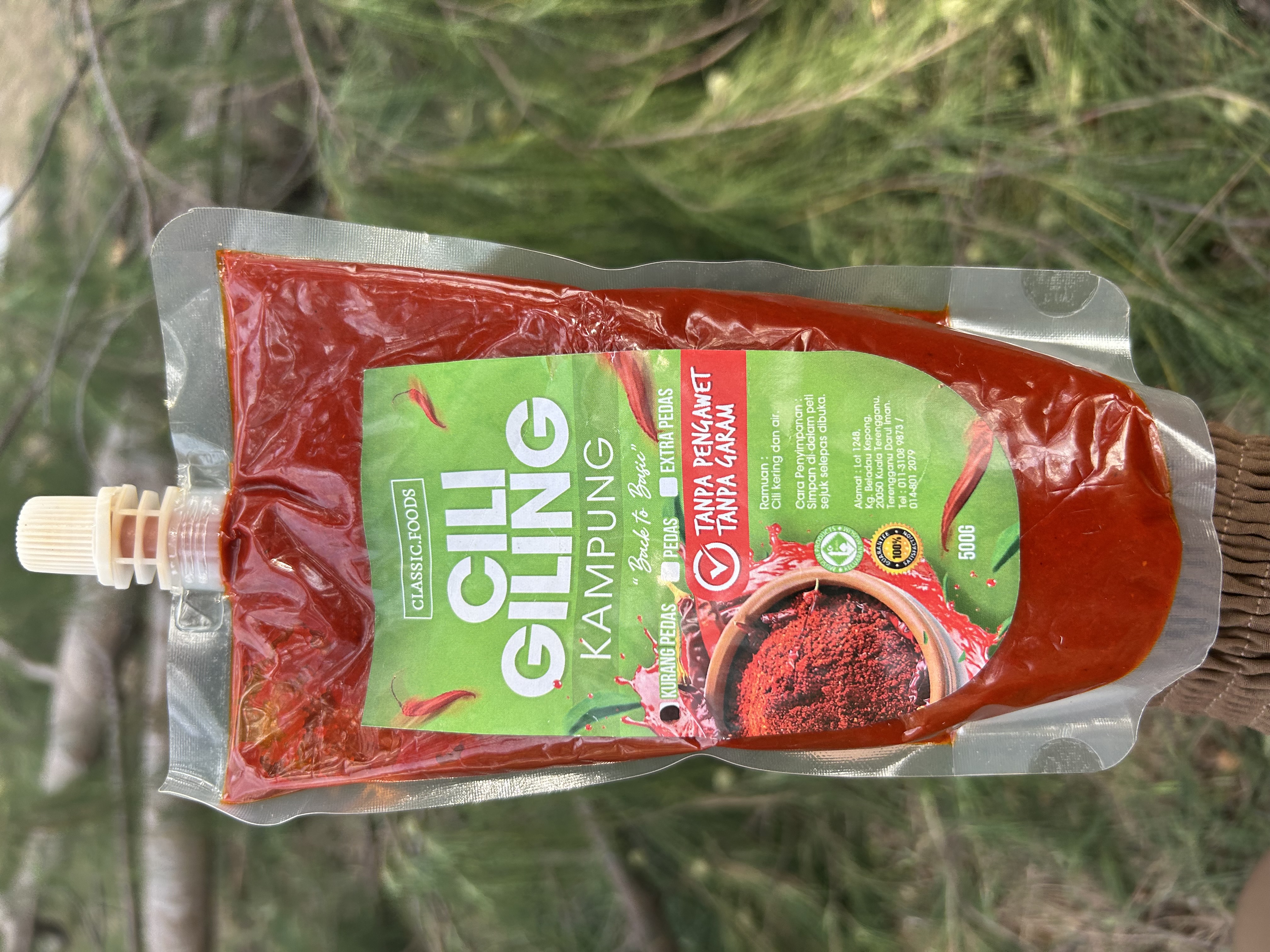 Cili giling Kampung tanpa menggunakan bahan pengawet.Ramuan: Cili kering & air sahajaTidak masam dan masin. Sesuai untuk semua masakan.