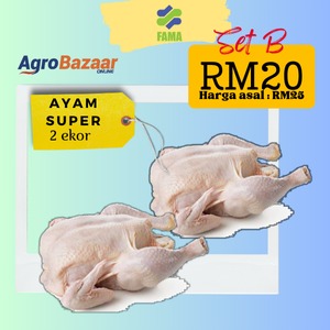 ? SET B – KOMBO BERANI BORONG? Ayam Super 2 ekor ? Harga Normal: RM25 ?️ Dengan Kupon Agrobazaar Online: RM5 DISKAUN! ? Harga Baru: RM20 SAHAJA! ? Dua ekor terus? Ini untuk yang suka masak besar atau kenduri kecil. Harga bawah RM25? Serius, mana nak dapat?