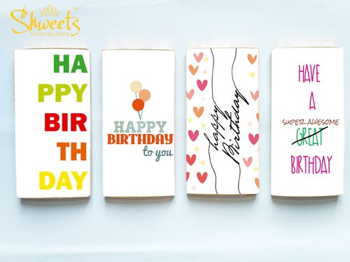 Gift Box dimension : 14cm x 27cmChocolate Bar Dimensions: 12cm L x 6cm WContents of gift box : 4 x 50g of Shweets assorted flavor chocolate bars wrapped in foil with 4 distinct Birthday themed paper label.These are high quality handmade Malaysian Chocolates and has received Halal Certification from Jakim MalaysiaFlavors :There are 4 assorted flavors of the chocolates in the gift set which may include any of the followings :Buttercrunch Toffee – Creamy buttery caramel toffee crunch in milk chocolateOreo– Crunchy oreo bits in white chocolate.Berry Crunch– Sour raspberrycrunch in white chocolateHoneycomb– Crunchy honeycomb and rice crispies in milk chocolateRaisinberry– Raisin and dried Strawberry in milk chocolateMint Crunch– Fresh mint crunch in dark chocolateShipping Note : All Chocolates will be wrapped in foil foam for delivery as to prevent it from the heat in our tropical weather.#BirthdayChocolates#CustomChocolates#giftset