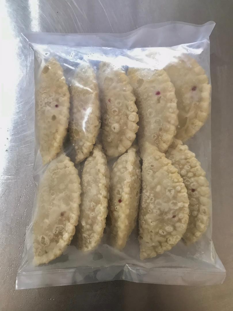 Mengandungi inti sardin yang dicampur dengan bawang.Terdapat 10 pcs di dalam satu paket