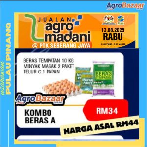 ? Jualan Hebat Kombo Merdeka di Pasar Tani Kekal Seberang Jaya – beras tempatan 10kg + minyak masak 2 peket + telur gred C (1 papan) hanya RM44 sahaja ?, lebih super jimat bila beli melalui Agrobazaar Online! ???