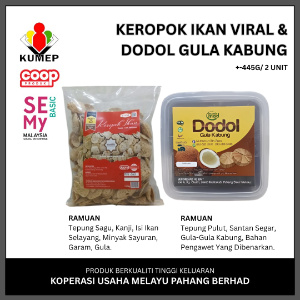KEROPOK IKAN VIRAL (225g) (SNEK INI SESUAI UNTUK SEMUA PERINGKAT UMUR)RANGUP,LAZAT DAN BERKHASIAT!!Resepi tradisi istimewa Pantai Timur.Ramuan : Tepung Sagu, Kanji, Isi Ikan Selayang, Minyak Sayuran, Garam, Gula.Fakta Nutrisi : Setiap 100g – Tenaga 482kcl, Lemak 24g, Karbohidrat 56.8g, Protein 9.6g.(AGEN/PENGEDAR SELURUH NEGARA DIPERLUKAN)Dodol Gula Kabung (220G)RAMUANTepung Pulut, Santan Segar, Gula-Gula Kabung, Bahan Pengawet Yang Dibenarkan.Dodol Gula Kabung AsliKenyal, lemak, manis – rasa asli yang buat rindu kampung! ?Dibuat daripada gula kabung asli, santan segar & pulut berkualiti, dimasak perlahan sampai dapat tekstur lembut dan rasa padu. Tak melekit di tangan, tapi melekat di hati! ?Sesuai untuk buah tangan, kudapan, atau hidangan istimewa.✅ Buatan tradisional✅ Tanpa bahan pengawet✅ 100% rasa asli kampung"AGEN JUALAN DIPERLUKAN"Resepi tradisi istimewa orang Pahang Pertanyaan dan Tempahan:Koperasi Usaha Melayu Pahang Berhad (095099084 | 0192162348)