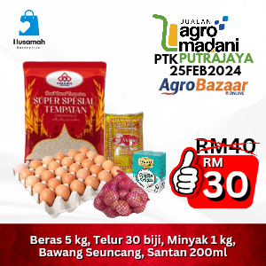 Jualan Kombo Runcit 30, Diskaun RM10 dengan setiap belian kombo runcit. Barang Kombo (Beras 5 Kg, Minyak Peket 1kg, Telur Sepapan, Bawang Seuncang)
