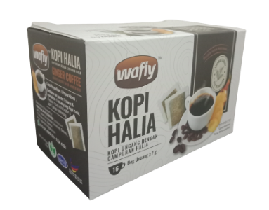 KOPI HALIA UNCANGKopi halia uncang mengandungi 16 uncang dalam satu kotak dan berat satu uncang 7 gramTelah dapat status HALAL, Mesti dan Logo Buatan Malaysia"Dicipta Untuk Kepuasan"