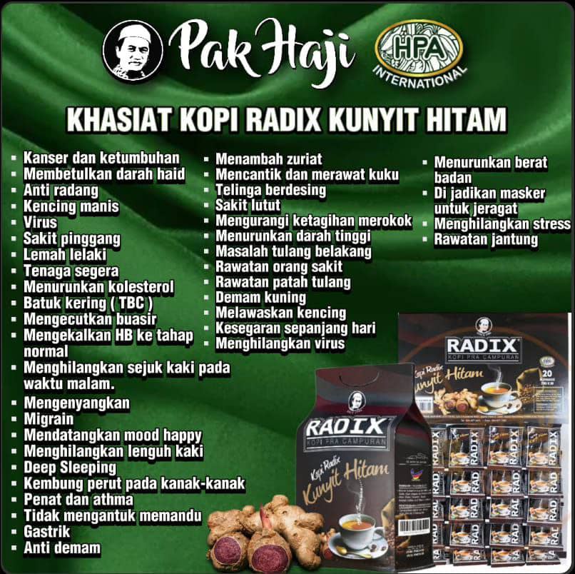 Kopi radix kunuit hitam... bagus untuk pelbagai masalah.penyakit... d buat dari 10 herba terpilih