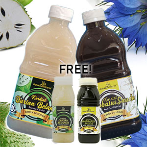 BELI MANA- MANA KORDIAL 1 LITER DAN DAPATKAN PERCUMA KORDIAL 250ML!- Ambil Kordial sebanyak 3-4 sudu makan dan campurkan dengan segelas air panas/ suam/ sejuk.-Minum 2-3 kali sehari.-Boleh juga diminum terus dalam 1-2 sudu makan tanpa dicampur air.-Simpan di tempat yang kering dan sejuk ataupun di dalam peti sejuk.