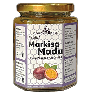 Ramuan: Markisa, Air, Gula, Stevia, Madu, Carrageenan, Asid Sitrik, Xanthan Gum, Sodium BenzoatCara: Campurkan 2 sudu besar ke dalam 1 gelas air panas/ suam.Simpan di peti sejuk selepas dibuka