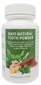 MAYI Natural Tooth Powder has 20 Types of Herbs:* Cleans the teeth and gums.* Keeps the teeth & gums strong and healthy.Usage:Wet mouth, take some powder and massage all parts of gum. Then, brush appropriately and rinse thoroughly. *Do not mix with any toothpaste.Free from:Flouride, Artificial Sweeteners, Artificial Colours, Carrageenan, Propylene Glycol, Triclosan, Sodium Lauryl Sulphate (SLS), Diethanolamine (DEA)Ingredients: Salt, Cloves, Cinnamon, Peppermint, Nutmeg, Fennel, Ginger, Holy Basil Leaves, Emblic Myrobalan, Belleric Myrobalan, Chebulic Myrobalan, Black Pepper, Long Pepper, Cardamom.