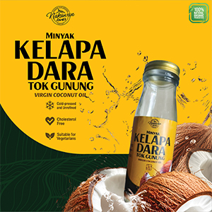 Minyak Kelapa Dara Tok Gunung – Khasiat Alam Semula Jadi Dari Banjaran NakawanDihasilkan secara tradisional daripada santan kelapa segar, Minyak Kelapa Dara Tok Gunung adalah sumber nutrien semula jadi yang kaya dengan asid laurik dan antioksidan. Diformulasi oleh komuniti tempatan di Banjaran Nakawan, Perlis, minyak ini memberi pelbagai manfaat kesihatan dari hujung rambut hingga ke hujung kaki.Khasiat & Kebaikan: Antioksidan & Asid Laurik – Meningkatkan imun badan, anti-virus, antibakteria & anti-kulat Tenaga & Metabolisme – MCT menukar lemak kepada tenaga dengan cepat, sesuai untuk kawalan berat badan Kesihatan Jantung – Meningkatkan kolesterol baik (HDL) Kecantikan Kulit & Rambut – Melembap, merawat ekzema, kelemumur & kulit kepala Penghadaman Baik – Membantu serapan vitamin & atasi masalah sembelit Menstabilkan Gula Dalam Darah – Sesuai untuk pesakit diabetes (dengan nasihat doktor) Membantu Fungsi Otak – Memberi tenaga kepada otak, bantu pesakit Alzheimer Kesihatan Badan Umum – Menyediakan nutrien penting untuk kesihatan harian Cara Penggunaan:Luaran: Sapukan pada rambut, kulit, atau kawasan yang mengalami masalah. Dalaman: Ambil 1-2 sudu kecil sehari (boleh dicampur dalam makanan/minuman), ikut nasihat kesihatan individu.100% Asli | Tanpa Bahan Kimia | Diperbuat Oleh Komuniti Banjaran Nakawan Jadikan Minyak Kelapa Dara Tok Gunung sebagai sebahagian daripada rutin harian anda untuk gaya hidup yang lebih sihat, bertenaga dan seimbang secara semula jadi.