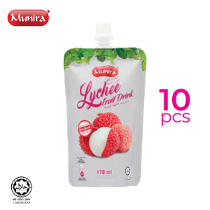 Munira Lychee Drink 170 ml x 10pcs Ingredients: Water, Sugar, Concentrated Lychee Juice, Citric Acid, Vitamin C (Ascobic Acid). Contains Permitted Preservative, Colouring and Flavouring. #Muniradrinks #Munira #FruitDrink #Minuman #Jus #Fruit #Juice