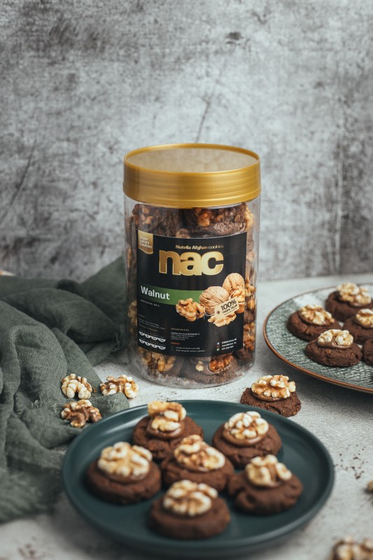 NAC WALNUT ⁃ TIDAK MENGANDUNGI TELUR (sesuai bagi yang mempunyai masalah alergik) ⁃ Didatangkan dengan 2 size iaitu balang besar dan balang medium. ⁃ Menggunakan ‘BAHAN PREMIUM’ yang berkualiti tinggi untuk menghasilkan NAC. ⁃ Cookies diselaputi Nutella dan ditopping dengan kacang walnut yang tinggi kandungan fiber dan protein.Ingredients: Butter, Gula, Tepung, Cocoa powder, Bijirin, Extract Vanilla