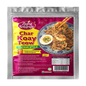 PES CHAR KOAY TEOW by DARA SEKURUNBerat Bersih : 80 gmJenis : Sedia-Untuk-DimasakHidangan Untuk : 2 orangKetahanan & Cara Penyimpanan Sebelum Dibuka: 24 bulan daripada tarikh pemprosesan. Simpan di suhu bilik sahaja.Ketahanan & Cara Penyimpanan Selepas Dibuka: Baki pes yang tidak digunakan HARUSLAH disimpan di dalam peti sejuk dan dihabiskan dalam tempoh 3 hari. Bekukan sahaja baki pes tersebut jika anda mencadang untuk tidak menggunakan baki pes dalam waktu terdekat.Bahan Ramuan: Kicap, Bawang Putih, Minyak Sawit, Bawang Besar, Cili Kering, Cuka dan Gula.Cara Memasak :1. Panaskan 2 sudu besar minyak sawit.2. Goreng 6 ekor udang, kerang yang telah direbus seketika.3. Masukkan 1 pek Pes Char Koay Teow Chinese Style, 220g koay teow, taugeh dan kucai. Goreng menggunakan api kuat.4. Pecah telur dan kacau secepatnya menggunakan api deras.5. Tutup api dan sedia untuk dihidang.Keistimewaan :- Tak pedas. Kanak-kanak pasti menyukainya- Sungguh cepat digunakan, pes sudah lengkap dengan minyak dan secukup rasa.- Yang penting, dijamin HALALAN TOYYIBAN dan disahkan selamat untuk dimakan oleh KKM melalui pensijilan MESTI.- Tanpa MSG & bahan pengawet