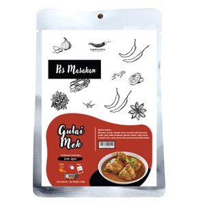 Pes Gulai Mek (150g)Setiap kali ke Kelantan memang wajib cari nasi berlauk gulai ayam Kelantan untuk sarapan pagi. Rasa dia memang padu habis.Tapi tak akan lah semata nak pergi kelantan nak makan gulai ayam kan,Sekarang ni tak yah susah2 nak pergi kelantan semata nak cari gulai, nak masak sendiri pun boleh dengan menggunakan Pes Gulai Mek Sambaleena ni,Cuma masukkan pes, masukkan ayam dan juga air. Kemudian kacau dan tunggu sehingga ayam masak, Sudah boleh dihidang, senang kan ? Bahan yang digunakan didalam pes ini adalah -Bawang Merah -Minyak Sawit-Rempah Gulai-Bawang Putih-Serai-Halia-Lengkuas-Kerisik-Santan-Asam Jawa-Rempah Ratus-Gula-GaramSatu Pes Masakan ini boleh letak dalam 800g ayam. Makan dalam 4-5 orang pun kenyang.