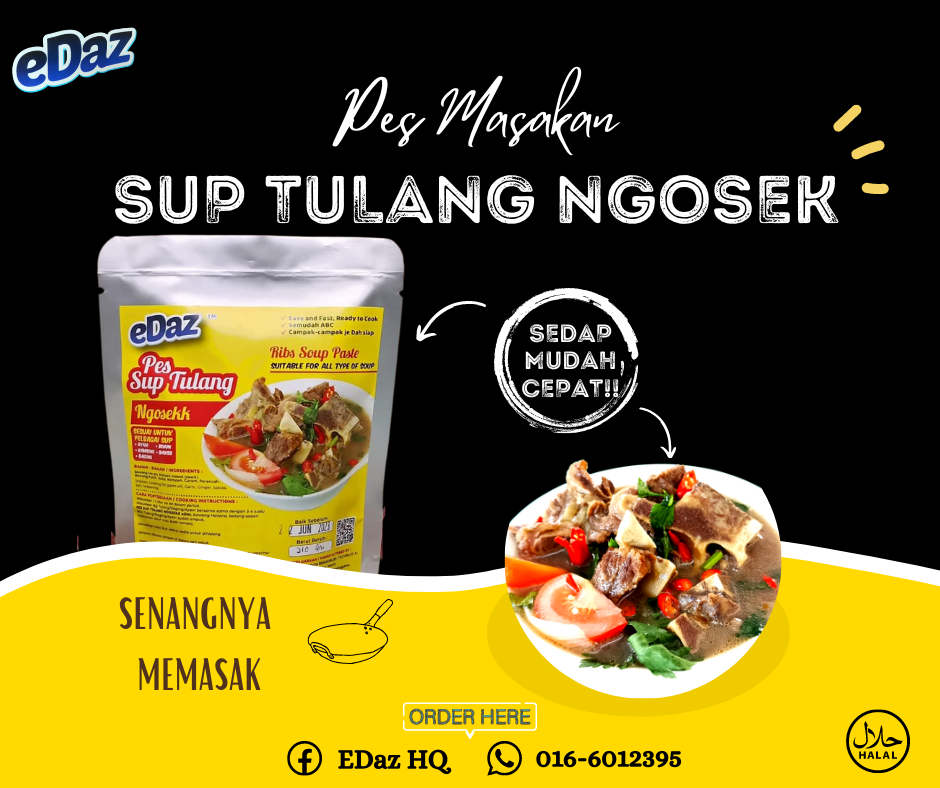 Pes Sup Tulang NgosekkTak perlu susah nak sediakan bahan yang banyak dan tak perlu menumis letak je pes sup tulang ngosekk ni dah jadi sup, nak buat sup ayam, sup daging, bakso, soto, sup sayur, bihun sup dan macam-macam lagi, sangat mudah dan sedap..Cepat, Mudah dan Sedap
