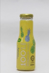 Pineapple Juice Made from 100% MD2 Pineapple. The highest quality of juice with exquisite taste for better digestive system, as well as to relieve cough and sinus. Quantity : 250 ml Ingredients : - Pineapple juice Product description : - Rich in vitamin C - Aids of Digestion - Original taste of MD2 Pineapple - Local product - 100% HALAL