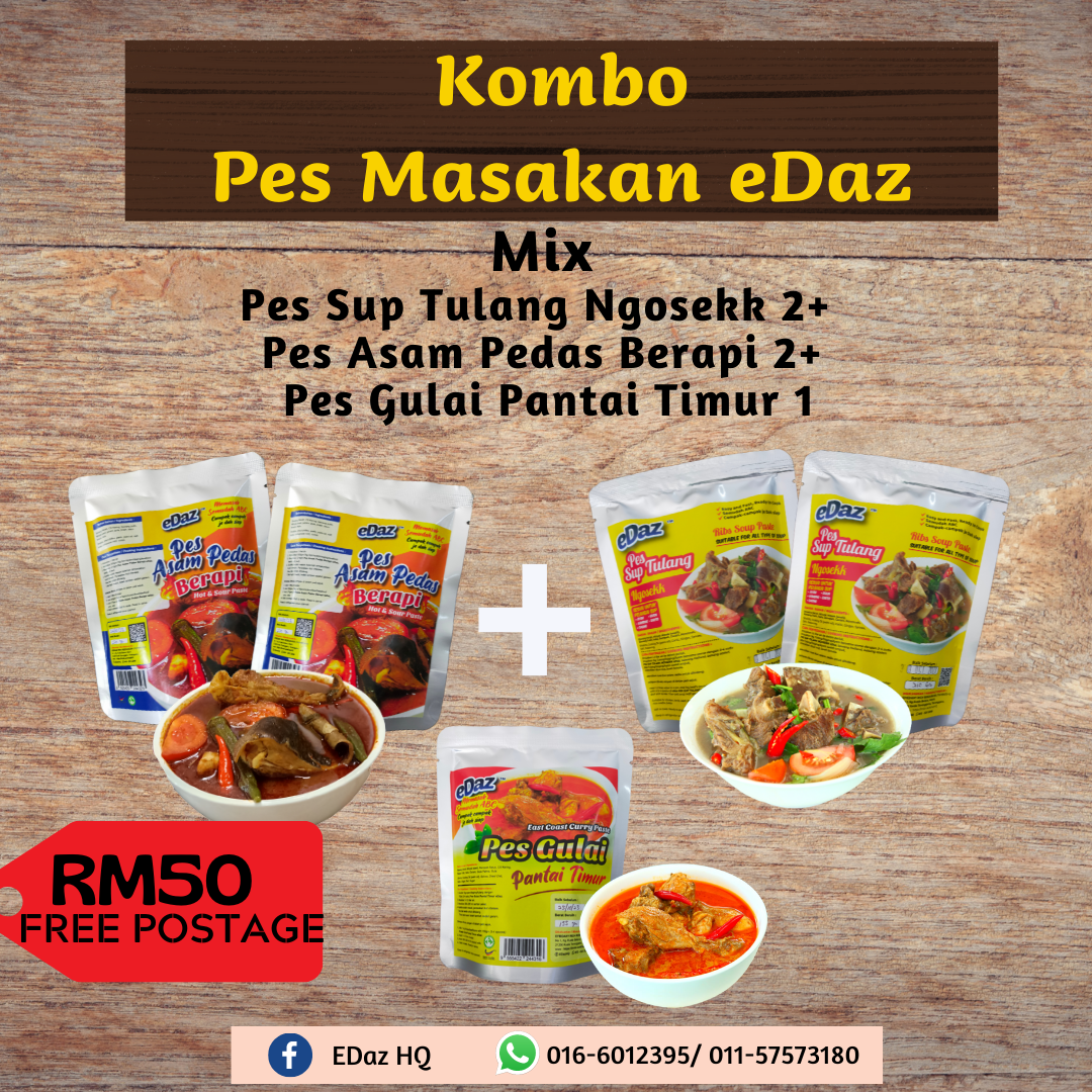 Mix Combo 5 Pes Masakan eDaz, Sup Tulang Ngosekk, Asam Pedas Berapi, Gulai Pantai timur