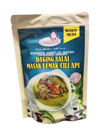 Lauk Daging Salai Masak Lemak Cili Api ini diperbuat mengikut resepi turun temurun. Dimasak menggunakan kaedah Retort untuk mematikan semua bakteria yang terdapat didalam makanan tersebut untuk menjamin kualiti dan ketahanan sehingga 2 tahun. Mudah untuk disediakan, anda hanya perlu merendm di dalam air didih selama 3 minit dan setelah itu sedia untuk dihidangkan. Memudahkan perjalanan anda dan dapat memenuhi citarasa seumpama berada di tanahair sendiri.