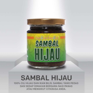 Sambal hijau ini menggunakan 100% cili hijau segar dan ikan bilis.-Kepedasan nya sederhana -sedap dimakan dengan nasi panas atau anda boleh menggunakan sambal ini sebagai bahan tambahan dalam masakkan seperti membuat sayur goreng/nasi goreng-tiada bahan pengawet ,tiada perisa msg dan tiada belacan-boleh dimakan terus dengan roti/mee goreng dan mengikut selera anda