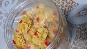 Biskut Semperit ini adalah biskut klasik turun menurunRasanya ranggup, lemak dan enak100% mentega buttercupHomemade cookies dan keluaran bumiputraProduk ini sangat rapuh!!! Permintaan sangat tinggi di setiap musim perayaan !PesananBiskut ini hanya akan dibakar selepas pembayaran dibuat. Tidak menyediakan ready stock. Semua penghantaran akan di bubble wrap dan mempunyai sticker fragile.Berat 250gm berat bersihKuantiti ;-50 biji.Bahan-bahan;-Buttercupicing sugar tepung gandum dan sebagainya