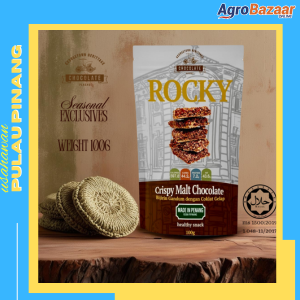 Rocky – Crispy Malt Chocolate ?✨ (Best Seller!)Rocky ialah coklat malt rangup yang menjadi kegemaran ramai dan salah satu best seller di kedai kami! Dikenali kerana teksturnya yang rangup di luar dan cair di mulut, Rocky juga sangat popular di outlet kami di Penang International Airport, pilihan utama pelancong dan peminat coklat premium.? Apa yang membuatkan Rocky istimewa?✔️ Best Seller – Produk paling laris di kedai dan pilihan utama pelanggan!✔️ Gabungan Sempurna – Perpaduan malt yang wangi, coklat hitam berkualiti tinggi, dan bijirin rangup untuk tekstur yang memuaskan.✔️ Rasa Unik & Mengasyikkan – Manis yang seimbang dengan sedikit rasa pahit dari dark chocolate, memberikan sensasi kriuk yang sempurna.✔️ Sesuai untuk Semua – Kudapan premium yang sesuai untuk dinikmati sendiri, dijadikan hadiah, atau sebagai snek semasa perjalanan.✔️ Dibuat dengan Teliti – Menggunakan bahan berkualiti tinggi untuk memastikan setiap gigitan penuh kenikmatan.? Bahan-bahan: Malt, Dark Chocolate, Cereal? Berat: 100g? Dapatkan di kedai kami atau di Penang International Airport!Jangan lepaskan peluang untuk menikmati coklat paling legend ini. Rocky – sekali cuba, pasti jatuh cinta! ??