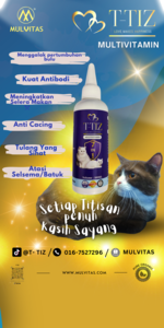 T-TIZ VITAMIN dicipta khas dari SUMBER ORGANIK 100% sesuai untuk kucing kesayangan untuk menambah selera makan, mengatasi masalah bulu gugur supaya kelihatan gebu dan montel.