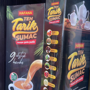 TEH TARIK TANPA GULA PUTIH dan susu sejat tin yg tinggi gula. Digabungkan dengan 9 ekstrak herba kurma, sacha inchi, habbatussauda