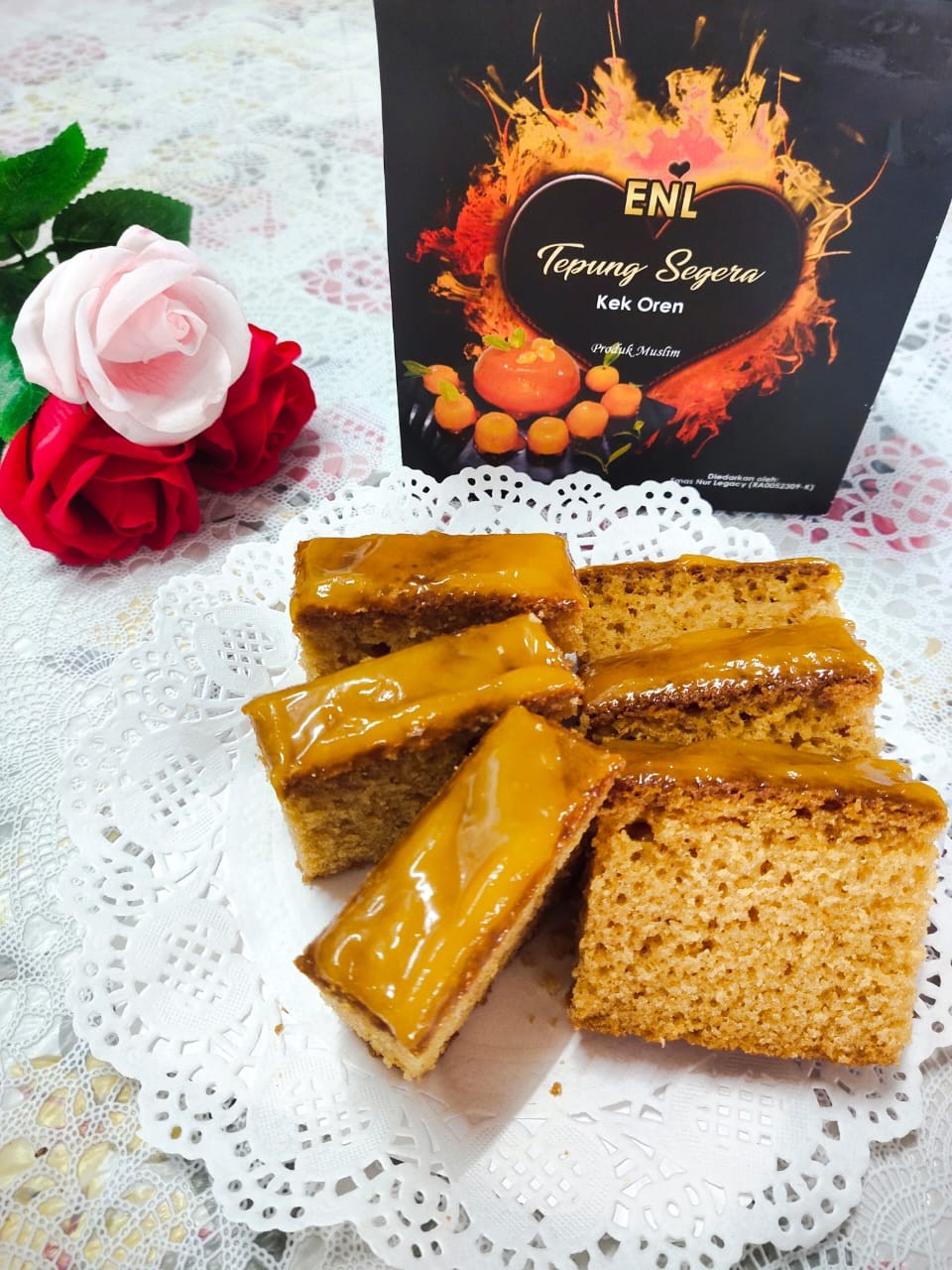Tepung Kek Segera:hanya perlu tambah-minyak-telur, dicampur dan sebatikan serta boleh dibakar atau dikukus.