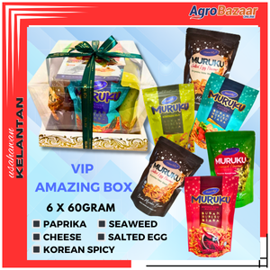 ? VIP AMazing Box – Hadiah Premium, Rasa Istimewa! ? VIP Amazing Box dari Hannars! Bukan sekadar muruku biasa, tetapi muruku premium dengan 6 paket eksklusif dalam setiap kotak: ? Korean Spicy – Pedas menyengat, penuh sensasi! ? Cheese – Lemak berkrim, cair di mulut! ? Seaweed – Aroma asli rumpai laut dan bayam Brazil yang memikat! ?️ Paprika – Rasa paprika yang yang unik! ? Salted Egg – Masin berlemak, penuh umami! ? Hadiah Eksklusif untuk Orang Tersayang! ✅ Sesuai untuk hadiah peribadi yang bermakna ✅ Pilihan hamper korporat yang eksklusif ✅ Buah tangan premium untuk sebarang majlis
