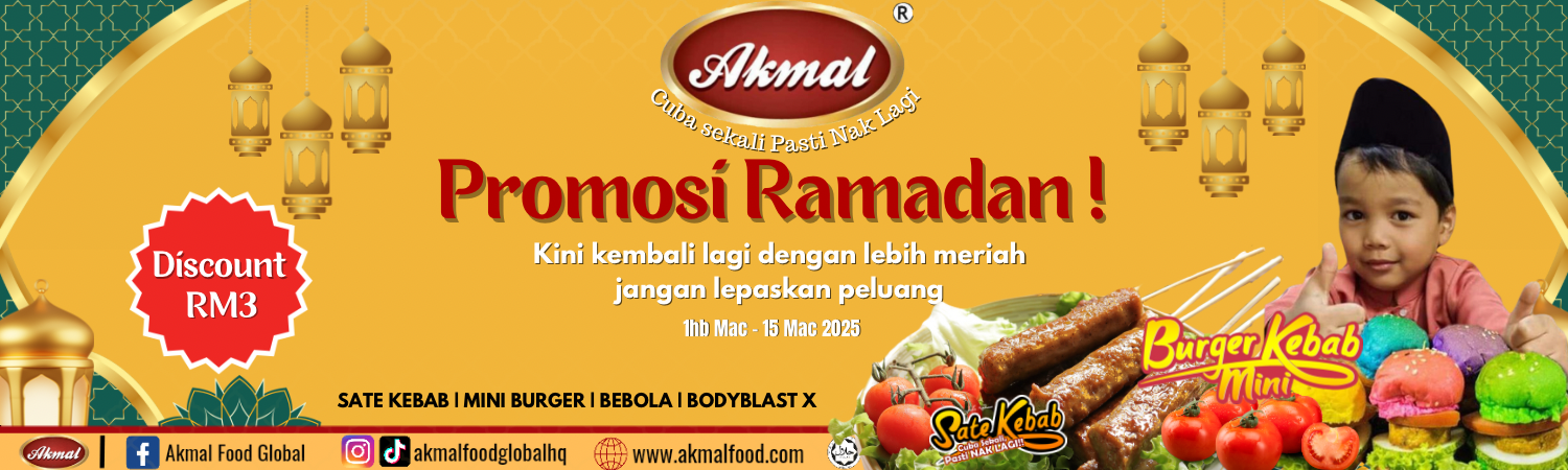 Menjual Sate kebab, mini burger, bebola kebab, ayam perah dan bodyblast x .Akmal food sudah beroperasi dari tahun 2010. ? IBU-IBU SUPER BUSY? MASAK HANYA 5 MINIT SAHAJA! ? Tak sempat masak tapi nak hidangan sedap & berkhasiat untuk keluarga? Kami ada SOLUSI TERBAIK! ? ? SATE KEBAB AKMAL SUPER JUICY – Daging perapan istimewa, dipanggang sempurna, penuh dengan rasa yang MENGANCAM! ? MINI BURGER AKMAL GEMPAK – Bun gebu, daging premium, dan sos rahsia yang buat anak-anak TAK BERHENTI MINTA TAMBAH! ? YANG BESTNYA! Hanya perlu 5 minit untuk sediakan! Masak ikut cara paling mudah: ✅ Air Fryer – Lebih cepat & sihat ✅ Grill – Rasa lebih beraroma ✅ Kukus / Rebus – Lembut & juicy ✨ KENAPA WAJIB CUBA? ✅ Jimat masa – sesuai untuk ibu-ibu sibuk! ✅ Rasa premium pada harga mampu milik ✅ Confirm buat suami & anak-anak TERLIUR! ⏳ PROMO TERHAD! Order hari ini & nikmati DISKAUN ISTIMEWA! ? WhatsApp kami sekarang sebelum kehabisan! ? (012-2631749) #satekebab #satekebabakmal #miniburger #miniburgerakmal #pattimini #pattiminiakmal #sejukbeku #iks #halal #murah #sedap