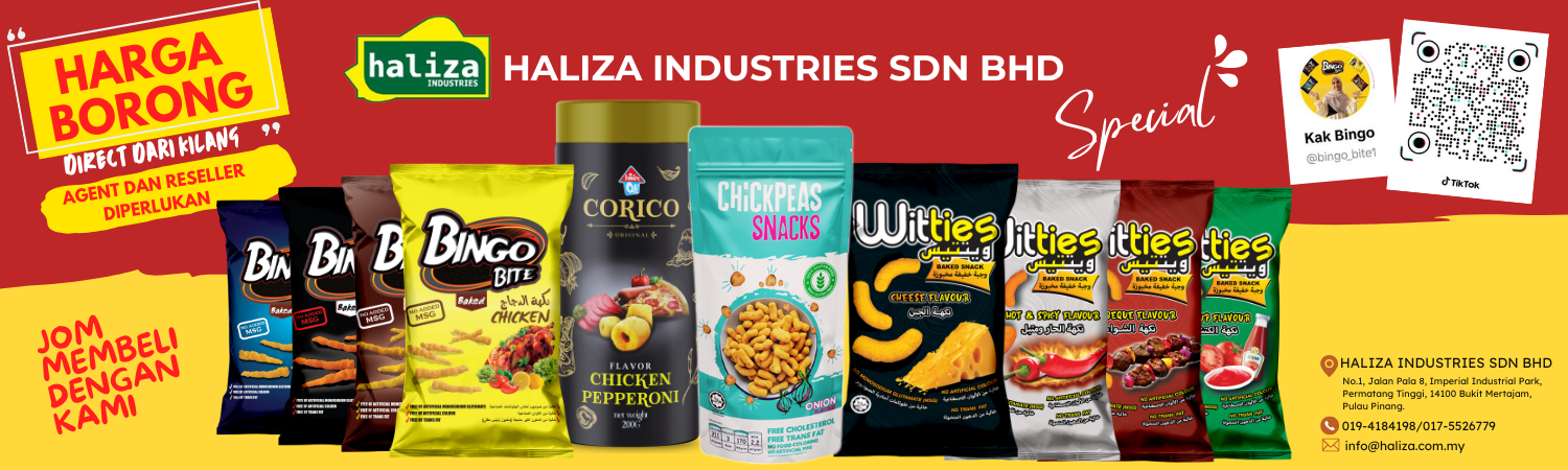 Haliza Industries Sdn Bhd (1015412-D) (HISB) is a snacks manufacturing company consist of corn and potato based snacks. HISB is keen to provide healthy and tasty snacks. The company produces variety of flavours such as onion. The main purpose of our company is to produce product that are free of Monosodium Glutamate (MSG), artificial colouring, trans-fat free, and less cholesterol.