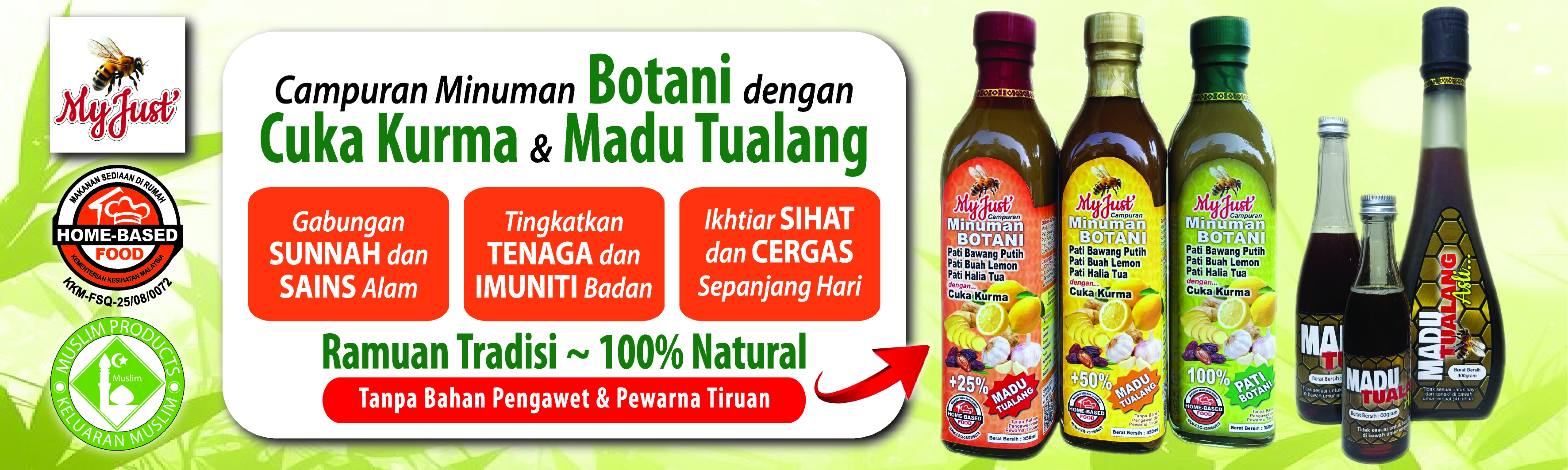 MyJust Minuman Botani campuran Pati Bawang Putih, Halia Tua, Lemon dan Cuka Kurma dengan Madu Tualang Asli.